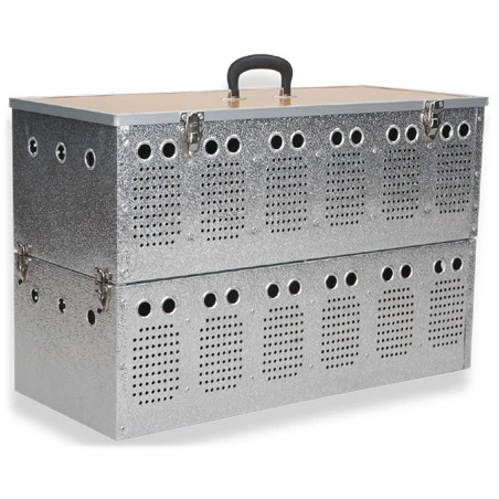 Verkrijgbaar in x aantal maten voor verschillende soorten dieren. Alle dieren zitten apart door middel van rekjes, ze kunnen elkaar dus niet lastig vallen tijdens de vervoer periode. De manden zijn goed in luchtcirculatie om oververhitting te voorkomen.