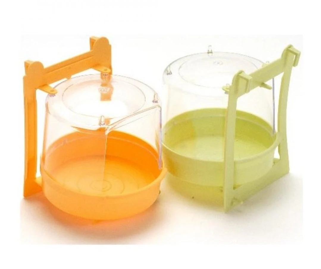 Dit type badhuis heeft een dubbele functie. Kan zowel aan de buitenkant van de kooi geplaatst worden. Maar indien men het rechthoekig ophang stuks verplaatst is deze ook bruikbaar in de kooi.