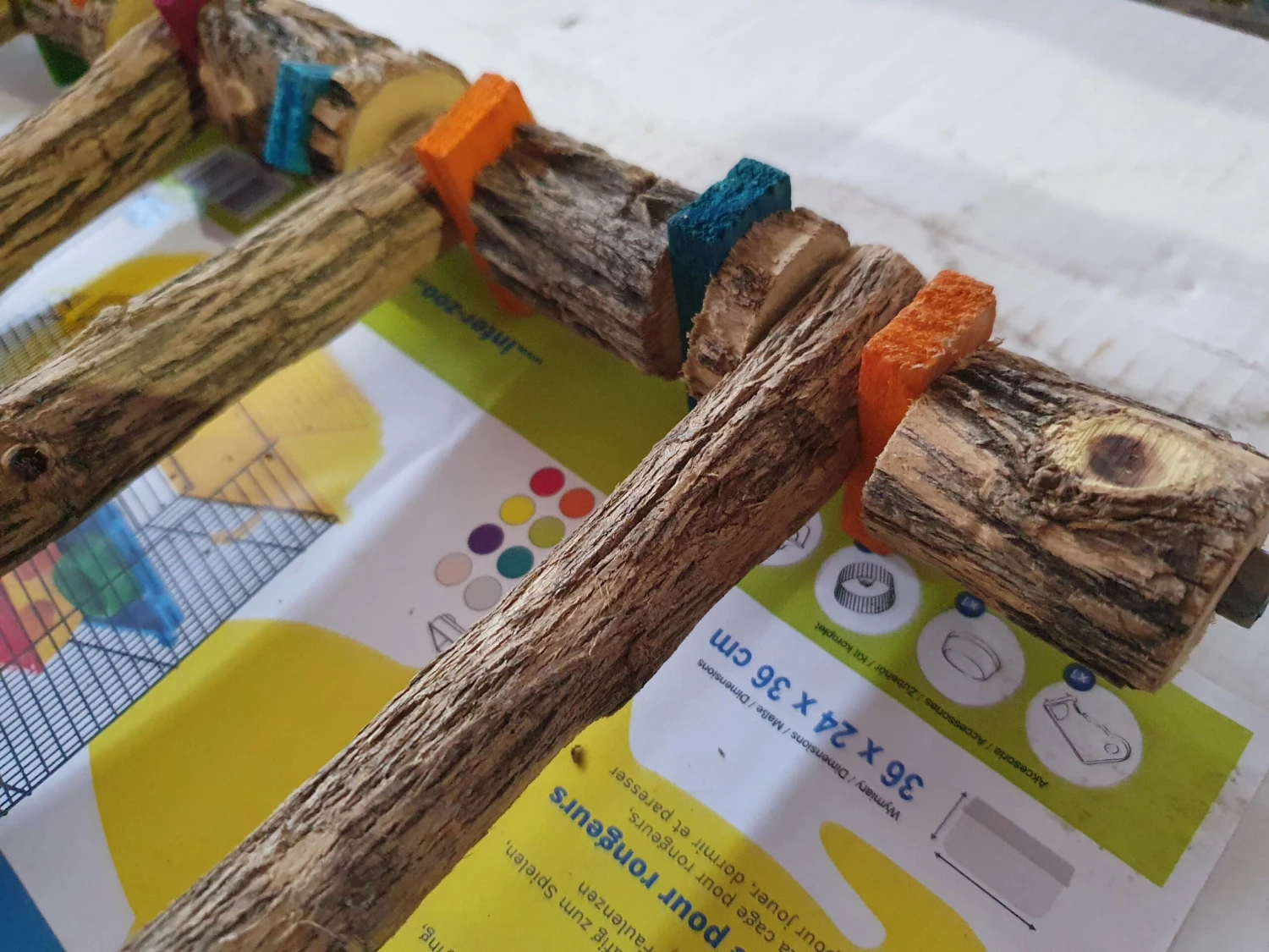 Deze kleurrijke ladder met een natuurlijke uitstraling is geschikt voor grote vogels.
