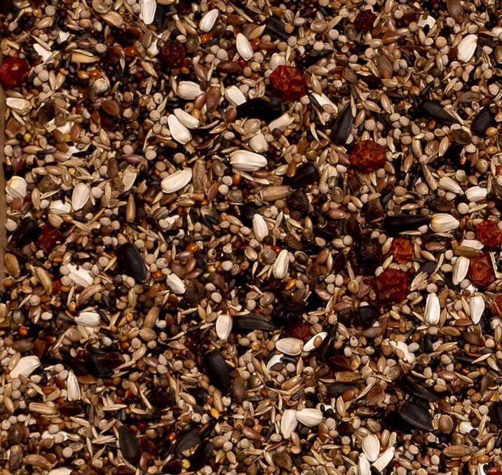 ✔️ Grote variatie aan speciale zaden: mariëndistel, witte perilla, zwarte zonnepitjes, dennen- en sparrenzaad, gold of pleasure.
