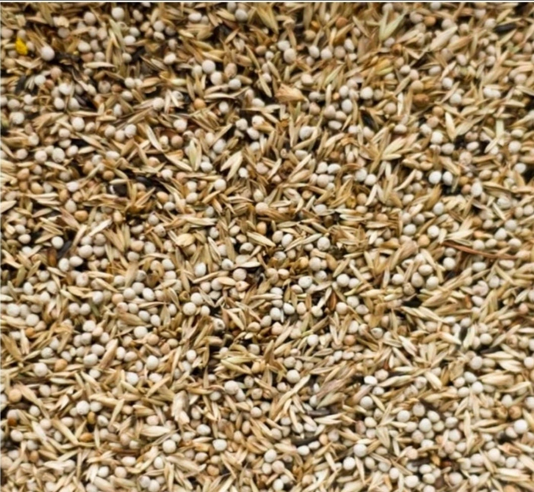 Is zeer gevarieerd met een hoog percentage hanenpoot en witte perilla.