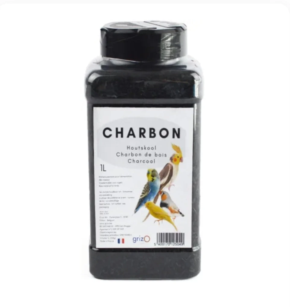 Houtskool heeft een antioxiderende werking, het voorkomt gasvorming en voorkomt rode buik bij kanaries en exotische vogels. Je kunt het ook uitdelen bij diarree. Doe een kleine hoeveelheid met een mengsel van Grit.
