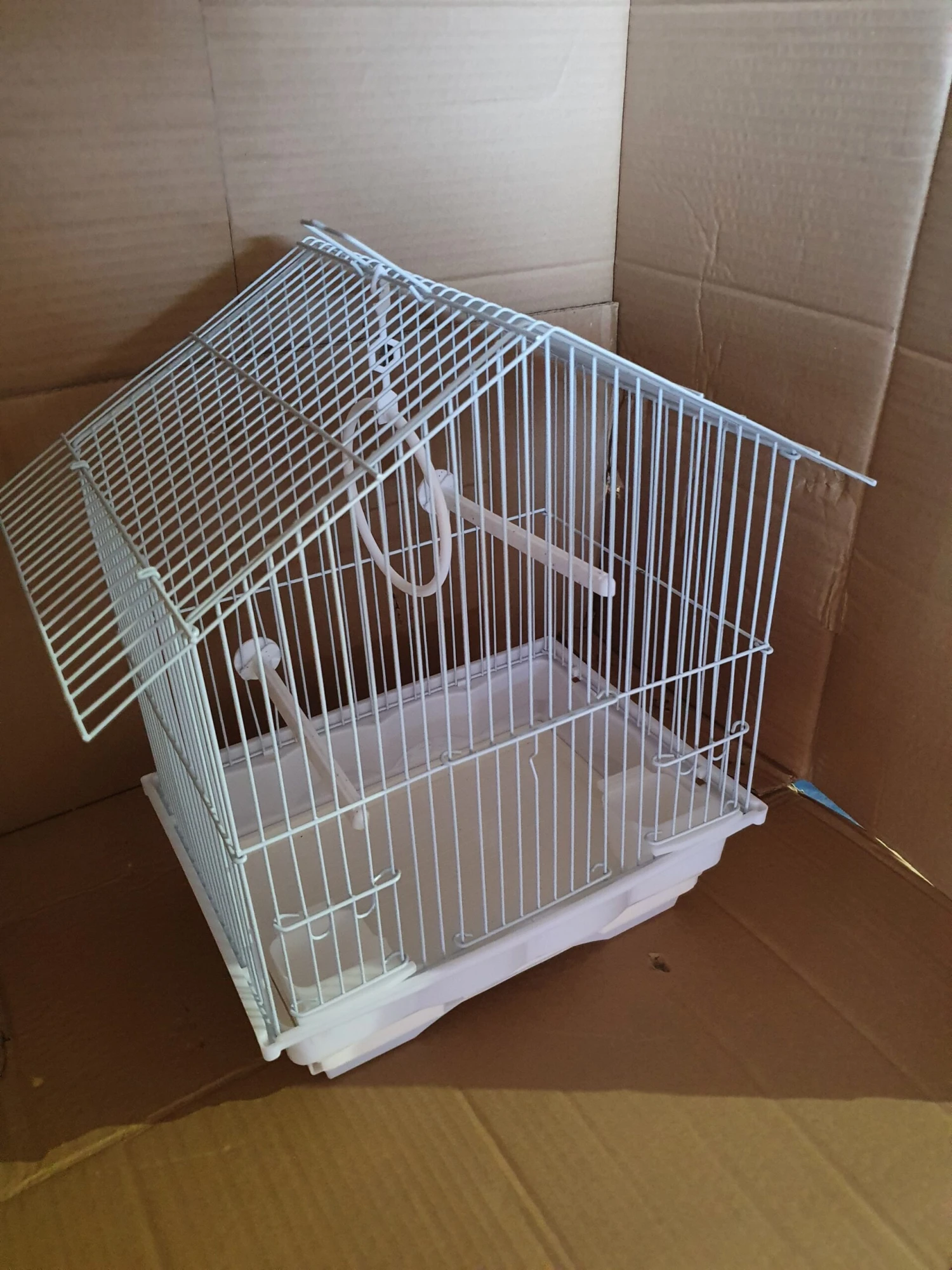 Kleine maar leuke vogelkooi voor gezelschap vogels. Kan gedemonteerd worden en op geborgen worden.