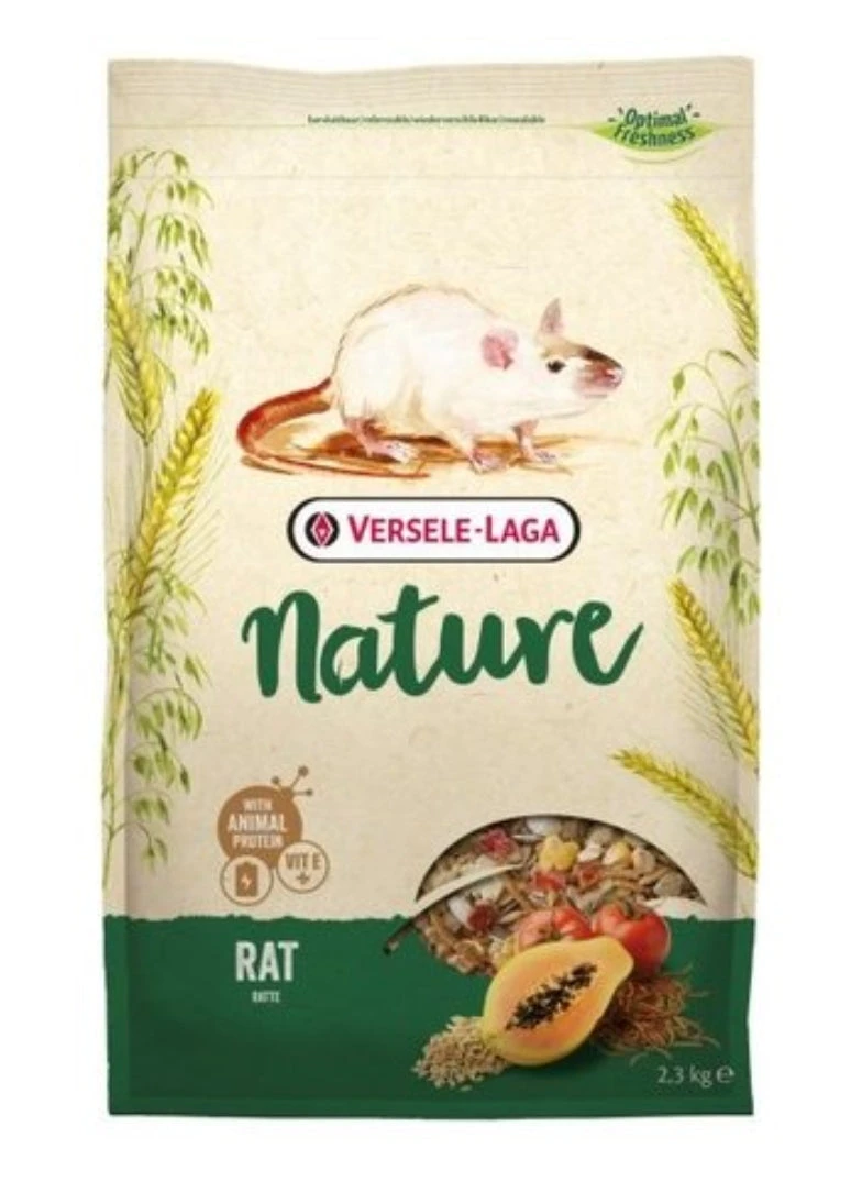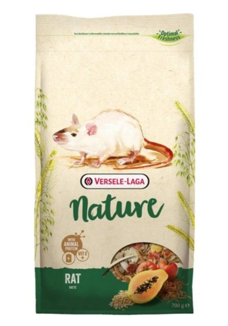Rattenvoer van Versele Laga Nature is een volledig voeder aangepast aan de voedingsbehoeften van ratten. Deze premium mengeling van natuurlijke componenten bevat alle noodzakelijke voedingsstoffen, vitaminen, mineralen en aminozuren die uw huisdier nodig heeft voor een onbezorgd en gezond leven vol vitaliteit. Rat Nature bevat extra granen, zaden, noten, fruit, kruiden, groenten en gezondheidsondersteunende supplementen: voor een prima spijsvertering, een goede tandverzorging, een glanzende vacht en een blakende gezondheid. De grote variatie aan ingrediënten garandeert een hoge smakelijkheid en opname.