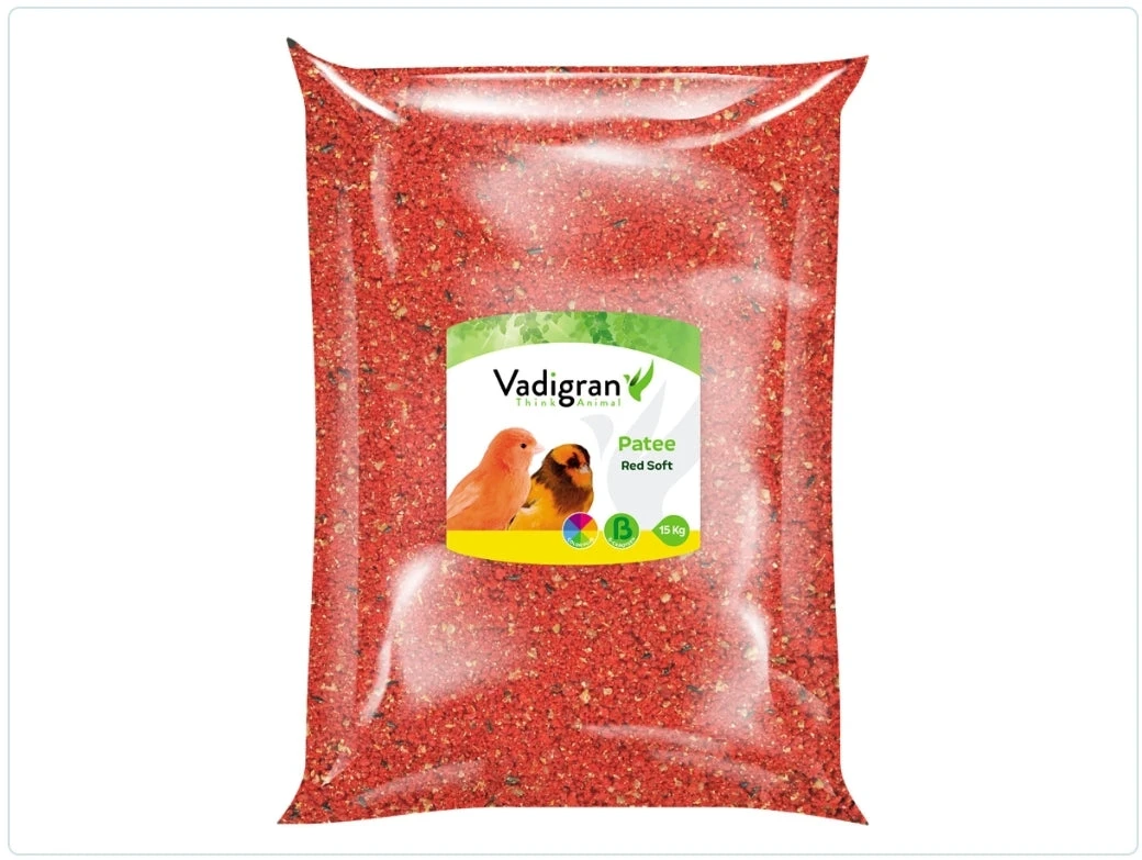 Vadigran Patee Red Soft is een semi-rul zachtvoer van excellente kwaliteit dat volledig klaar is voor gebruik en de kleuring van vogels bevordert. Bevat ß-caroteen en cantaxantine. Geschikt voor alle zaadetende vogels.