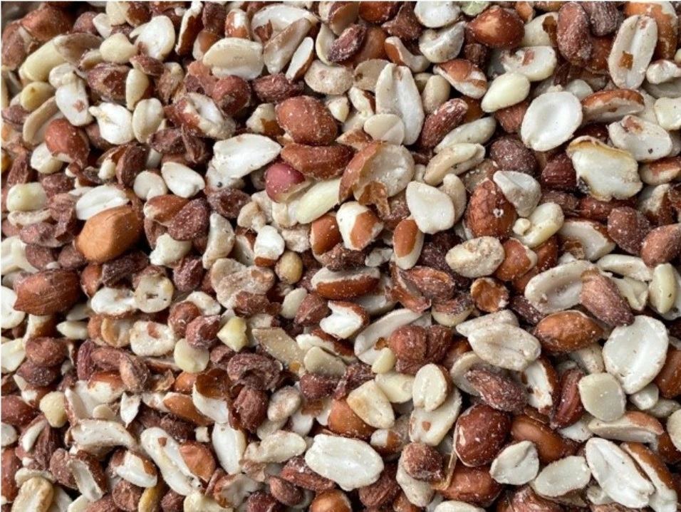 Zak met gepelde pinda’s, geschikt voor het bijvoeren van buitenvogels gedurende de wintermaanden.
