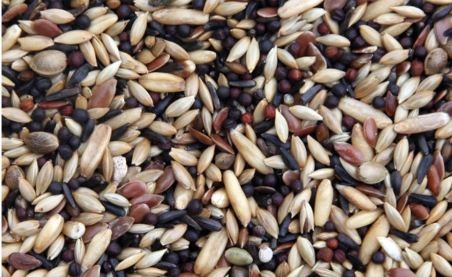 Kanariezaad 46%, niger 20%, shuttle 16%, lijnzaad 8%, gepelde haver 8%, hennep 2%