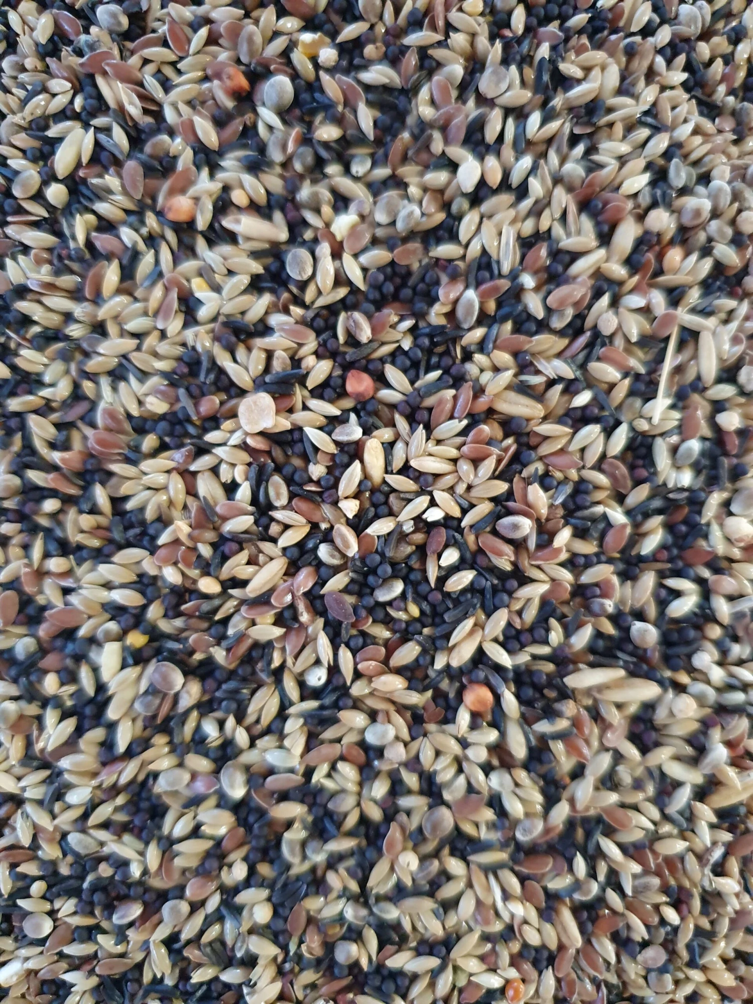Kanariegraszaad, raapzaad, nigerzaad, lijnzaad, kempzaad, gepelde haver, spinazie zaad, wortelzaad, rondzaad geel ( gierst ), sesamzaad, sorghum ( Milo ), graszaad, klaverzaad, cichoreizaad, rondzaad rood ( gierst)