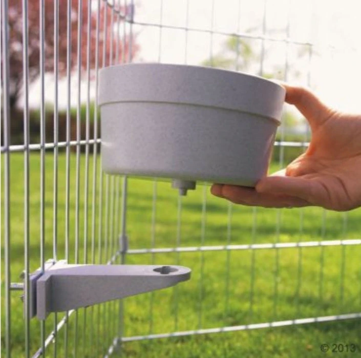 De houder van deze voerbak past op alle gangbare kooi-tralies (of bench, of ren). De voerbak is gemakkelijk schoon te maken en kan in één handbeweging uit de houder worden losgedraaid. Deze voerbak is ook geschikt om te reinigen in de vaatwasser!