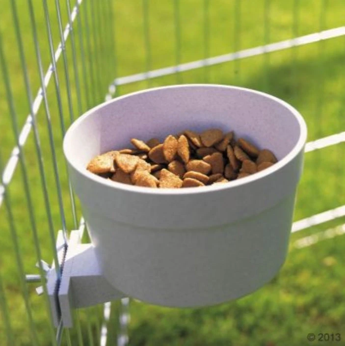 Een handige voerbak met houder van Savic die je aan ieder traliewerk kan bevestigen