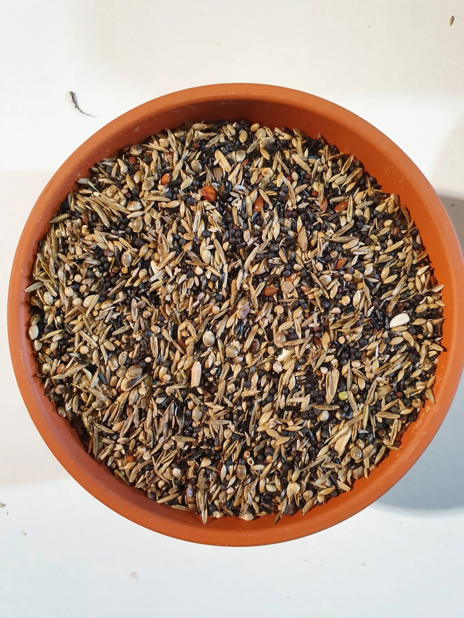 Wilde zaden, witzaad, niger, raapzaad, gras, witte perrilla, bruine perrilla, witte sla, onagre, hennep en lijnzaad.