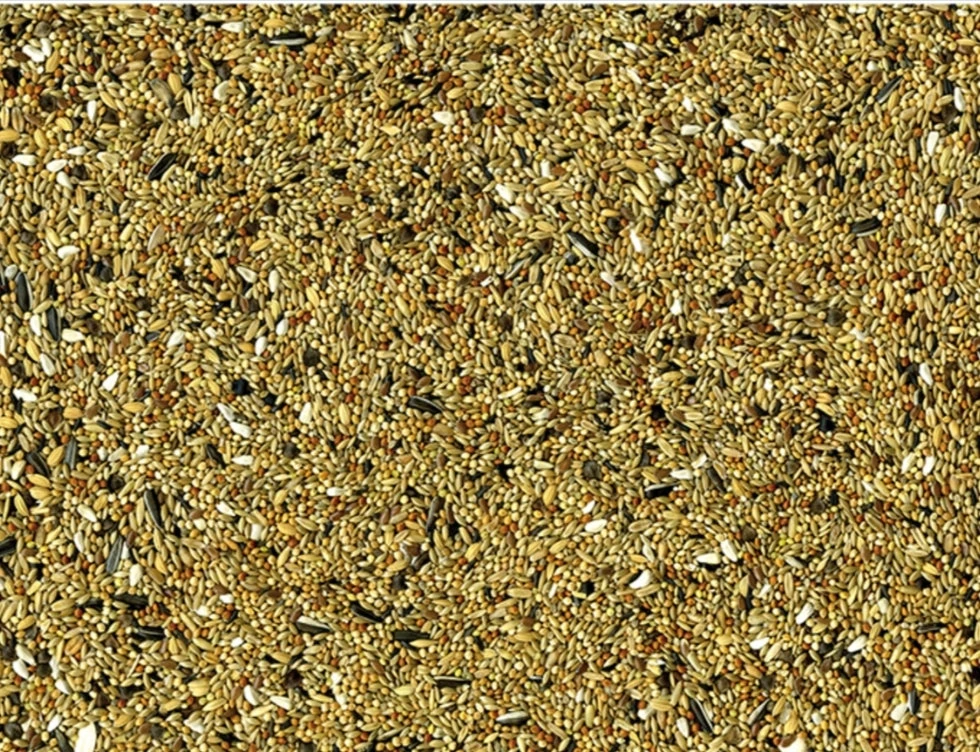 SAMENSTELLING: Kanariezaad, millet – geel, millet – wit, gepelde haver, cardy, paddy rijst, millet – rood, boekweit, millet – Japans, zonnebloempitten gestreept, tarwe, zonnebloempitten wit, lijnzaad, niger