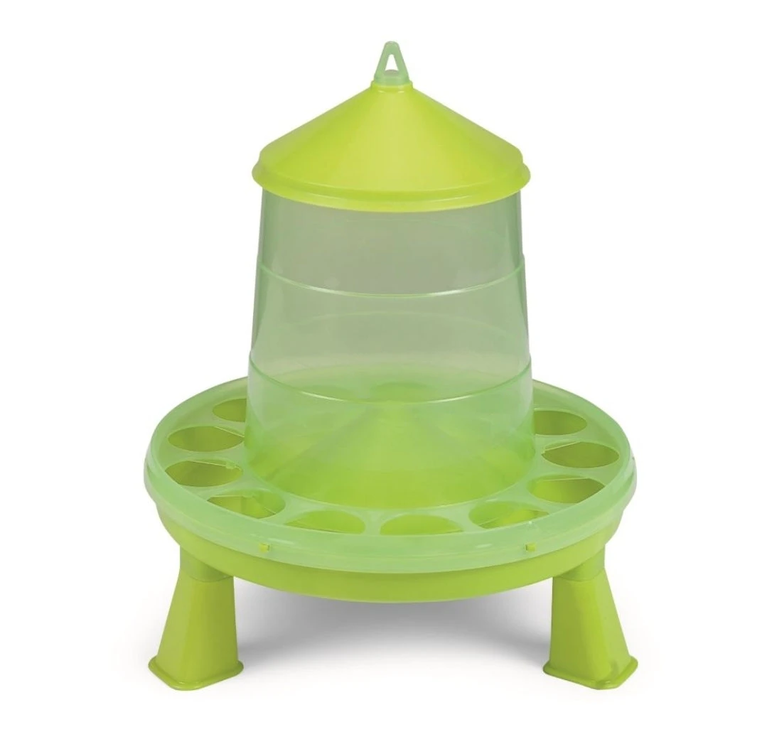 Deze 31 cm hoge Pluimvee Voertoren met een inhoud van 2 kg en een diameter van 26 cm wordt geleverd met een set poten. Door de poten staat de voertoren 10 cm van de grond, waardoor het voer minder snel vies wordt. De ronde Ø3,5 cm gaten zorgen voor minder verspilling van het voer. De voerbak is ook zonder poten te gebruiken en heeft dan een hoogte van 4,5 cm.