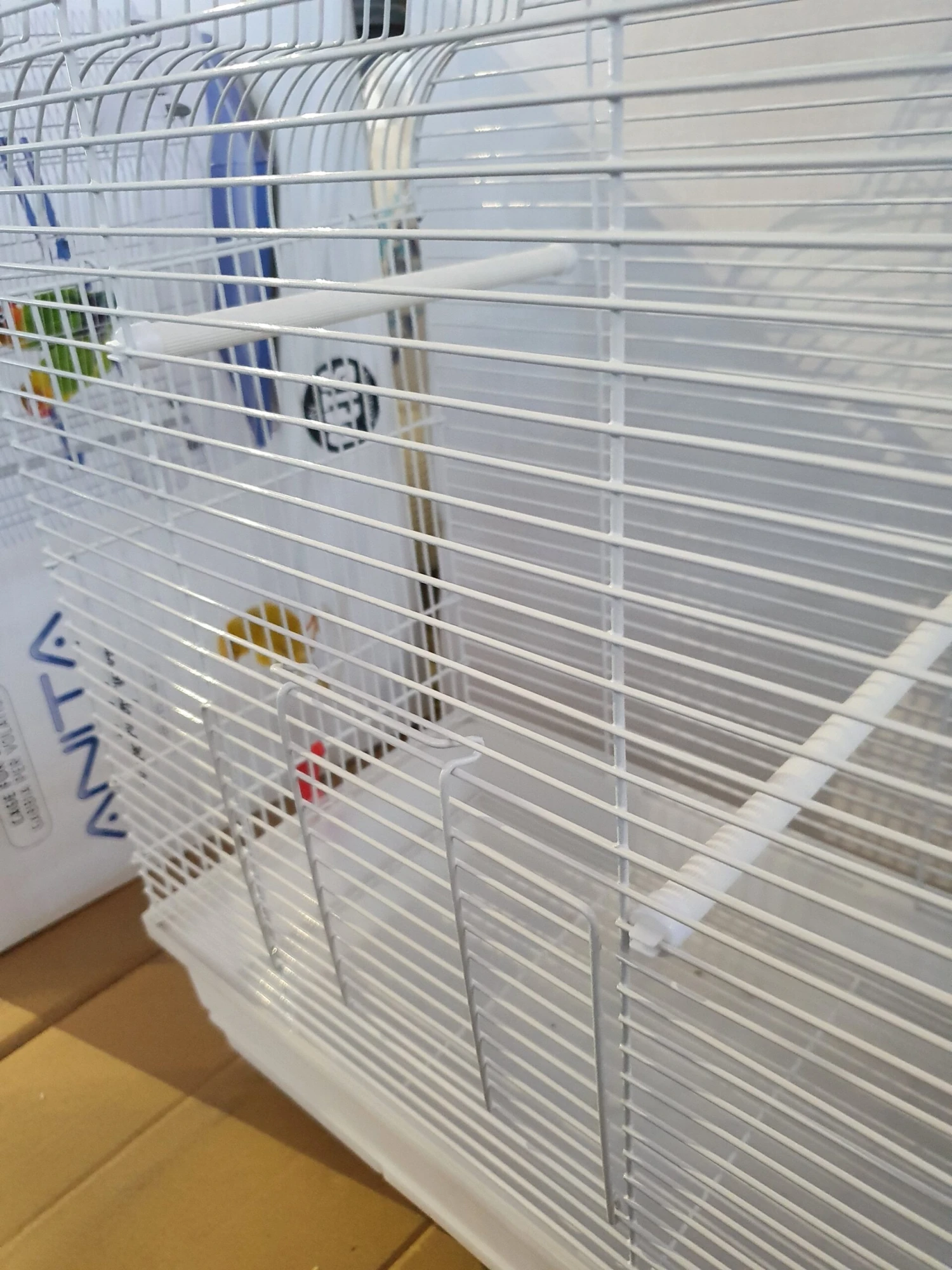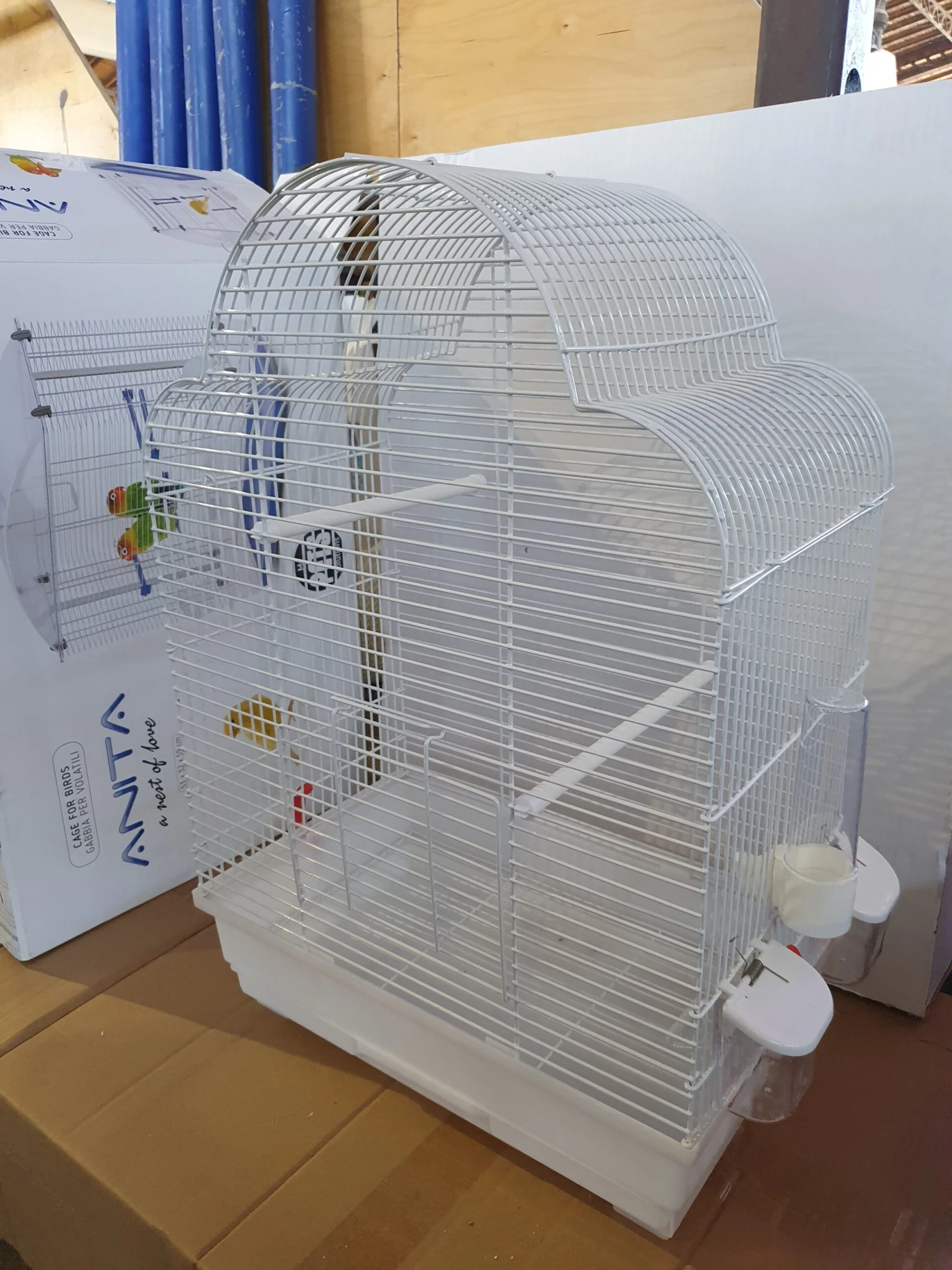 Leuke kooi voor kleine tot middelmatige vogels. Compleet met alle benodigdheden. Met kunststof schuif voor eenvoudige reiniging.