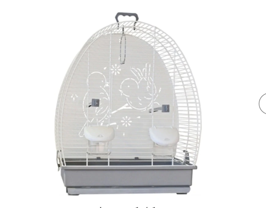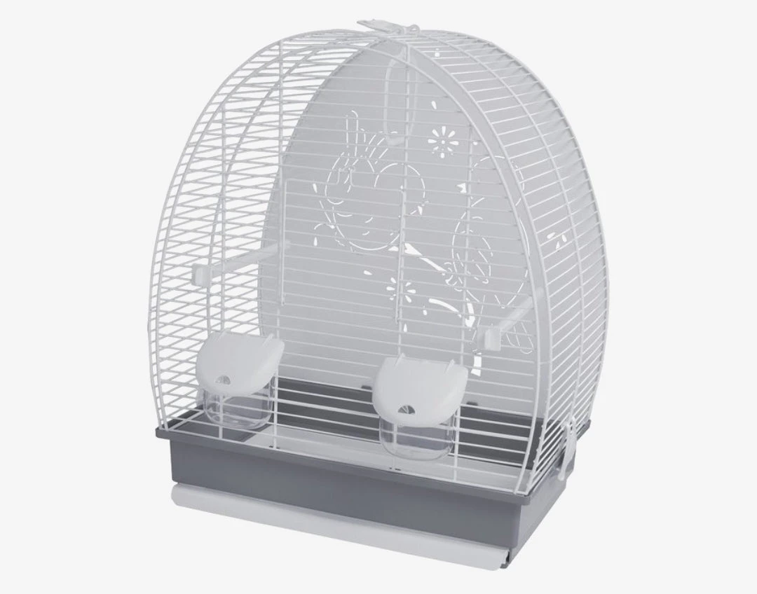 Vogelkooi geschikt voor de kleinere vogels, zoals parkieten, vinkjes en kanaries. De kooi heeft een mooi en strak design met een afbeelding van twee vrolijke vogels aan de achterwand. De kooi is voorzien van twee voer/drinkbakjes en twee stokjes. Aan de voorkant is de kooi voorzien van een deurtje.