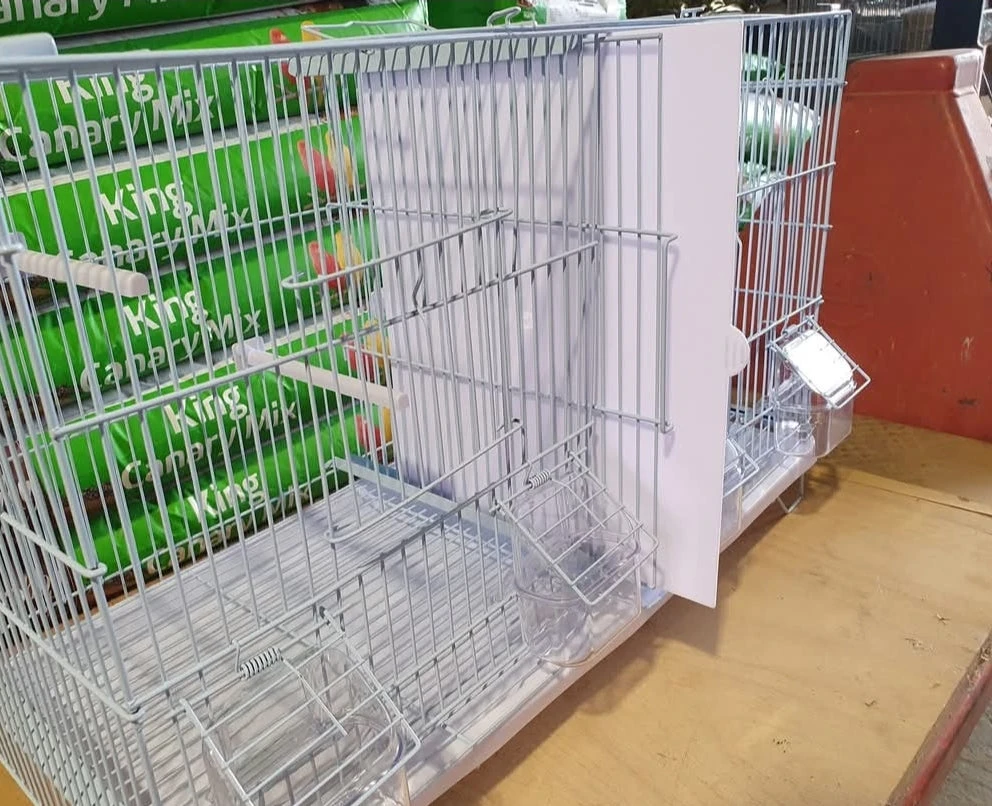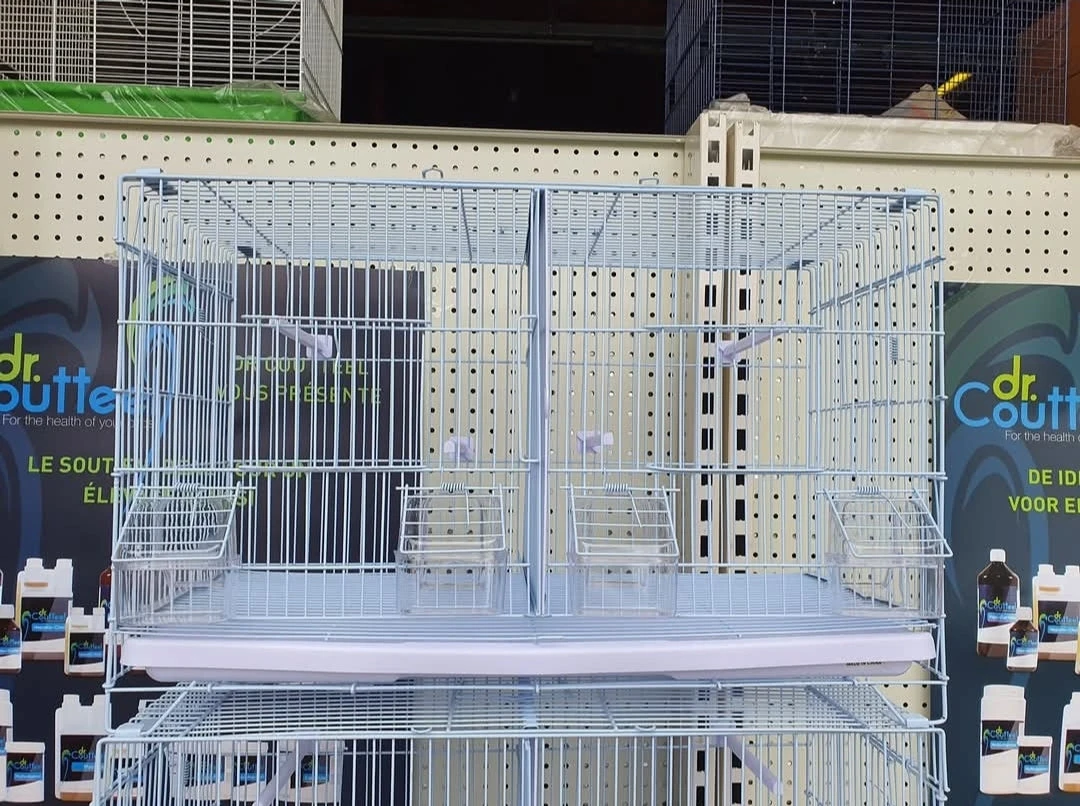 ◾Geleverd met voeder- en drinkbakken en zitstokken.