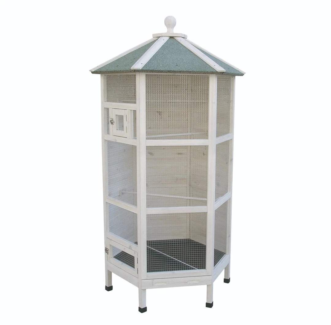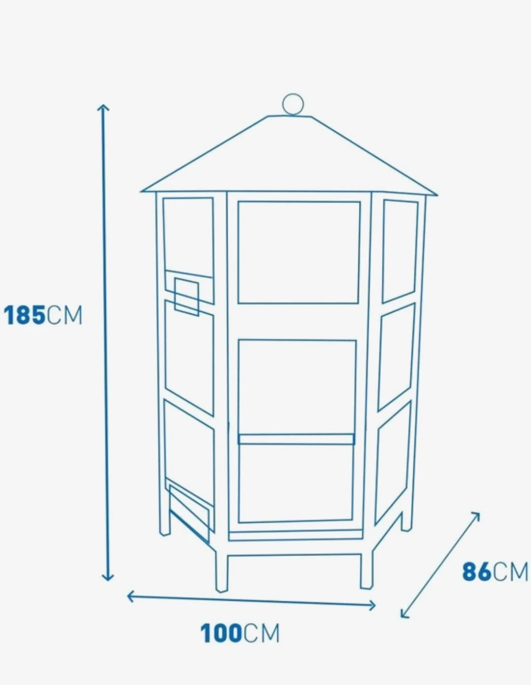 De Woodland Volière Hexagon Cottage van Duvo+ is een mooie volière welke is gemaakt van dennenhout en met een uitstekende afwerking. De volière is voorzien van ruime deuren en om gemakkelijk schoon te maken beschikt de volière over handige uitschuifbare mestlades! De Hexagon volière wordt geleverd met 2 zitstokken. De volière is al eenmalig gebeitst maar wij adviseren u om dit periodiek te herhalen om de volière zo goed en mooi mogelijk te houden. Dankzij de roofing gaat de volière bovendien lang mee.